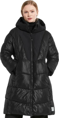 Der wattierte Parka Andrea wärmt nicht nur im Winter, sondern sieht auch noch stylish aus. Das Modell in A-Linie ist oversized geschnitten. Lange elastische Ärmelabschlüsse, große Seitentaschen und ein wärmender Kragen mit Kapuze und Kragen. Reflektierendes Hologramm.