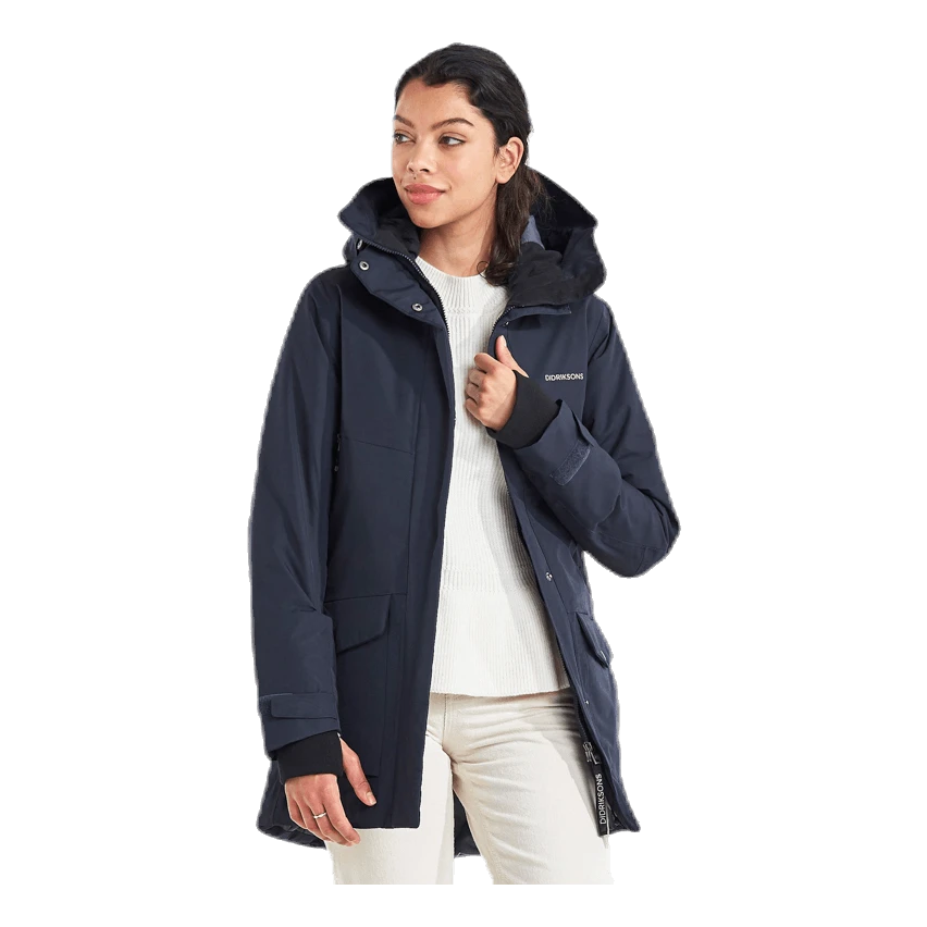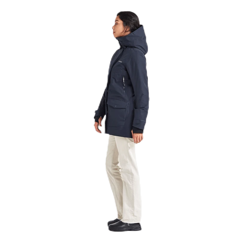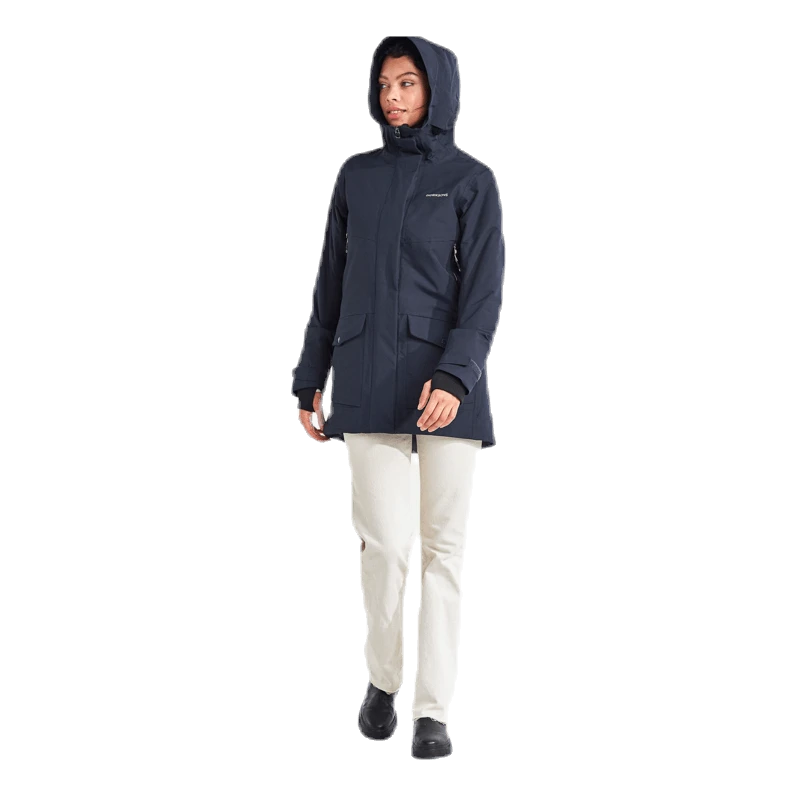 Frida ist ein warmer, sportlicher mittellanger Parka. Es ist absolut wind- und wasserdicht mit getapten Nähten und aus atmungsaktivem Material. Der hohe Kragen schützt vor kaltem Wind und die Kapuze ist verstellbar. Vier Fronttaschen, zwei mit Reißverschlüssen und zwei mit Druckknöpfen. Zwei Innentaschen, von denen eine leicht zugänglich ist, ohne die Jacke öffnen zu müssen. Kapuze, Bündchen, Taille und Saum können nach Bedarf angepasst werden. Der Parka hat einen praktischen Zwei-Wege-Frontreißverschluss für gute Belüftung. Das Futter wurde mit einer Lösungsfärbetechnik gefärbt. Diese Technik reduziert den Wasser-, Energie- und Chemikalienverbrauch während der Produktion. PFC-freie wasserabweisende Ausrüstung.