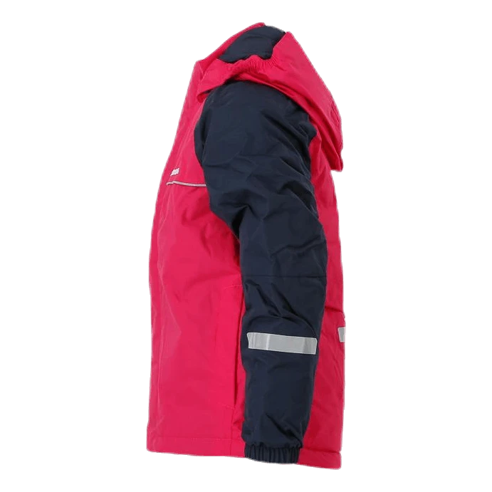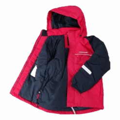 Idde eine gefütterte Jacke. Die Jacke ist sowohl wind- als auch wasserdicht mit getapten Nähten. Die Jacke hat sichtbare Reflektoren sowie eine abnehmbare Kapuze und einen hohen Kragen, der schützt. Die Vorderseite hat einen Reißverschluss mit Schutzschlaufe und zwei Taschen. Idde hat die Funktion „Größe erweitern“ in den Ärmeln und kann bis zu einer Größe erweitert werden. Das wasserabweisende Mittel ist PFC-frei.