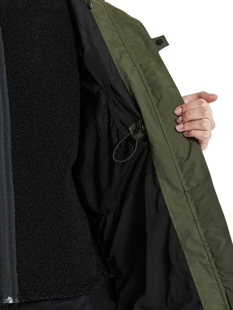 Angeschnittene, verstellbare Kapuze. Durchgehender 2-Wege-Reißverschluss vorn. Hinter der Frontleiste verbirgt sich ein Knopf zur bequemen Belüftung. Zwei geknöpfte Vordertaschen, eine Brusttasche mit Reißverschluss und eine Innentasche aus Mesh. Ein in der rechten Vordertasche verborgenes Reflektorband kann bei Bedarf außen getragen werden. Oberstoff aus 100 % Recyclingfasern. Pigmentgefärbtes Futter. Bei der Pigmentfärbung von Polyester- oder Polyamidstoffen werden bis zu 80 % weniger Wasser verbraucht als bei herkömmlichen Färbeverfahren. PFC-freie wasserabweisende Imprägnierung.