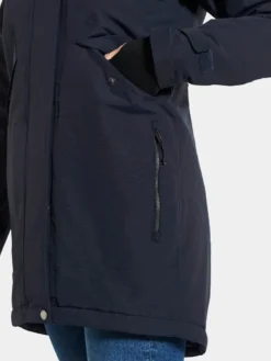Didriksons klassischer Parka Tanja hat eine feminine Silhouette. Dank versiegelter Nähte ist das atmungsaktive Modell zu 100 % wind- und wasserdicht. Die abnehmbare Kapuze und der hohe Kragen schützen hervorragend vor kaltem Wind.