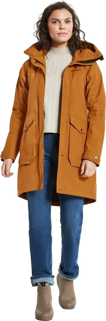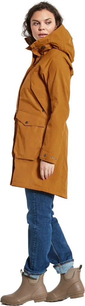 Die feminine Optik lässt sich durch den Kordelzug in der Taille und am Saum noch unterstreichen. Per Druckknopf verstellbare Ärmelabschlüsse. Angeschnittene, zweifach verstellbare Kapuze. Gute Belüftung dank 2-Wege-Reißverschluss mit Windschutzleiste und verdeckter Knöpfung vorn. Zwei Vordertaschen mit Knopfverschluss und Seiteneingriff sowie zwei Brusttaschen mit Reißverschluss. Zwei Innentaschen, eine davon mit Reißverschluss. Pigmentgefärbtes Futter. Bei der Pigmentfärbung von Polyester- oder Polyamidstoffen werden bis zu 80 % weniger Wasser verbraucht als bei herkömmlichen Färbeverfahren. PFC-freie wasserabweisende Imprägnierung.